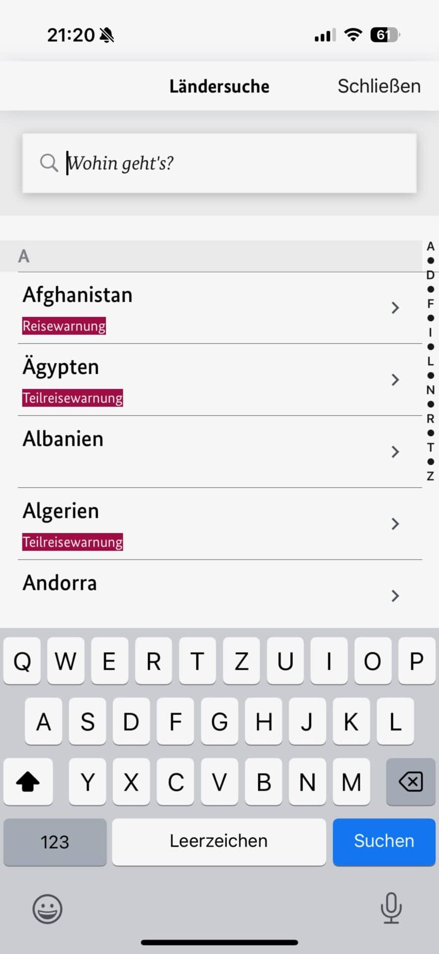 Sicher Reisen ist die App des Auswärtigen Amts (AA). Hier findet man schnell alle Informationen, die auch auf der Homepage des AA angeboten werden. Man kann aber auch Länder anpinnen und wird so über Änderungen der Lage in den Ländern informiert. Zusätzlich findet man für jedes Land noch nützliche Informationen zur deutschen Vertretung im Land und einigen Eckdaten des Landes.