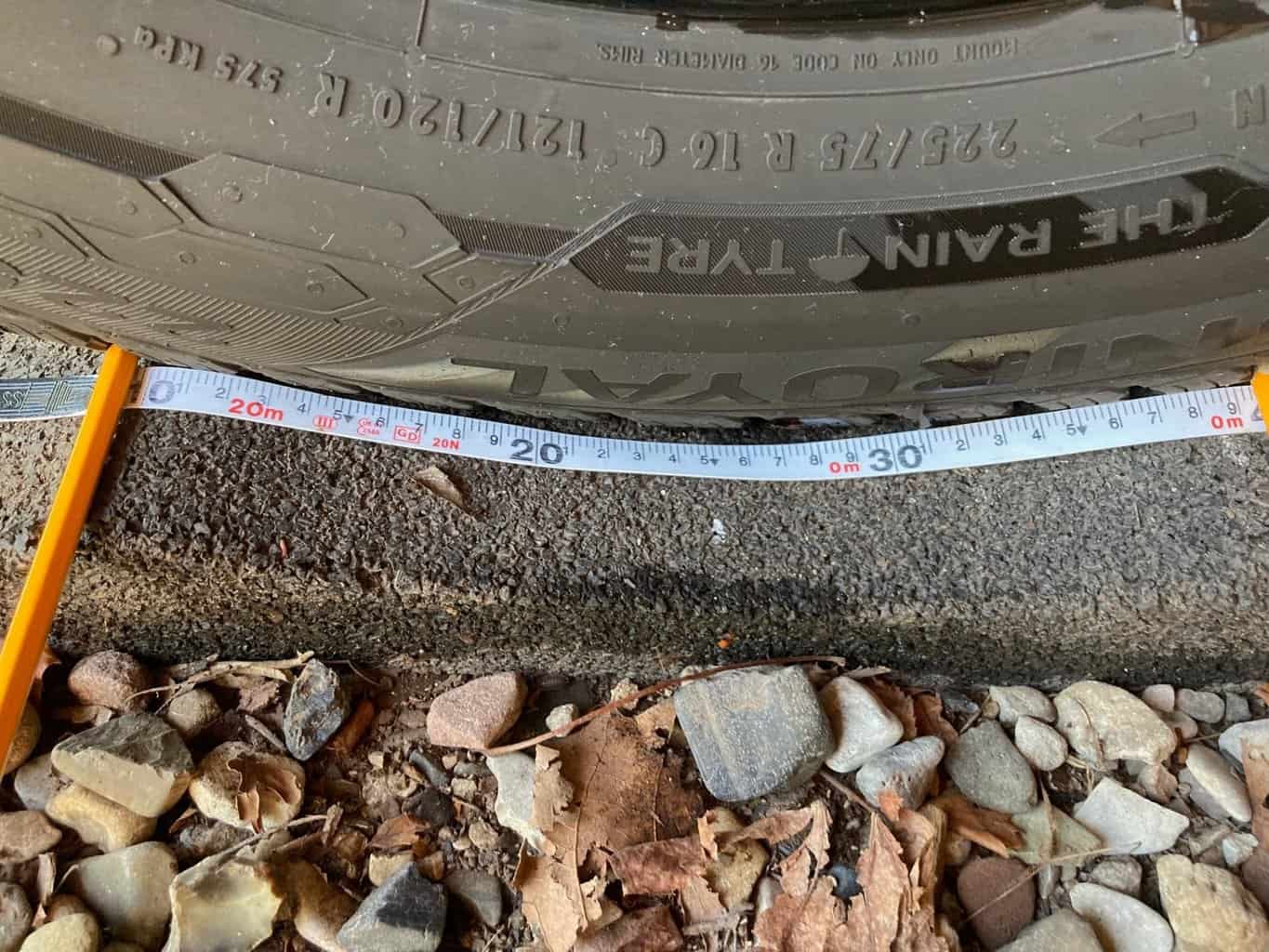 Ich habe diese Mitte 2021 erworben und nutze sie im Carport. Die Reifenschuhe verdoppeln die Standfläche der Reifen. Ohne Reifenschuhe ca. 14,5 cm, mit Reifenschuhe immerhin ca. 29 cm. (Siehe Fotos)