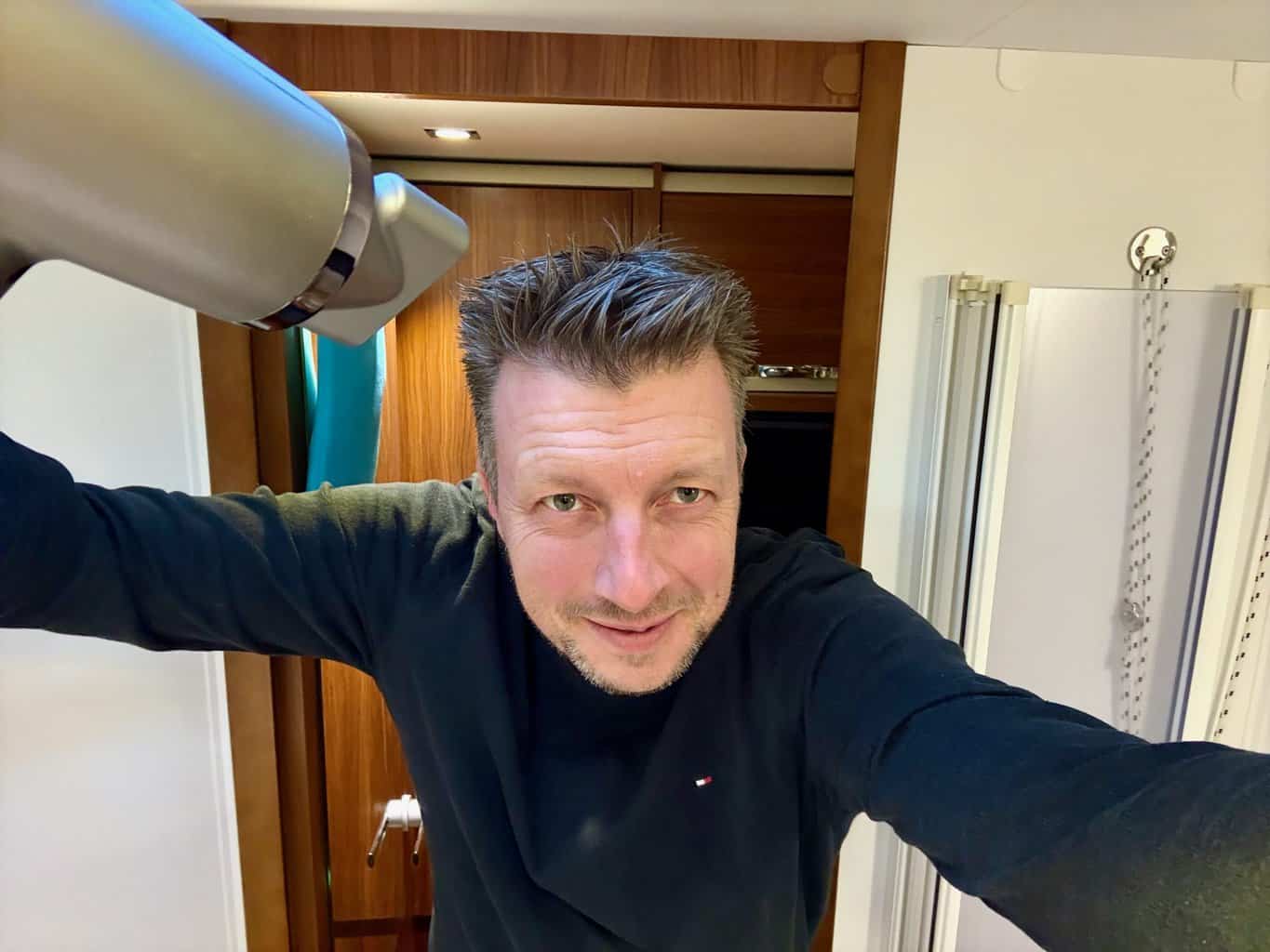 Ein Fön, der auf Amazon mit 2,8 Sterne total versenkt wird. Der bekommt eine Empfehlung auf camper.help? Wie das denn? Nunja, es ist im Augenblick der einzige AkkuFön auf dem Markt, welcher irgendwie eine Funktion wie ein Fön nachweisen kann. Der einzige. Und er tut für meine kurzen Haare das was er soll. Mit 12 Volt, kein Landstrom, kein Wechselrichter.