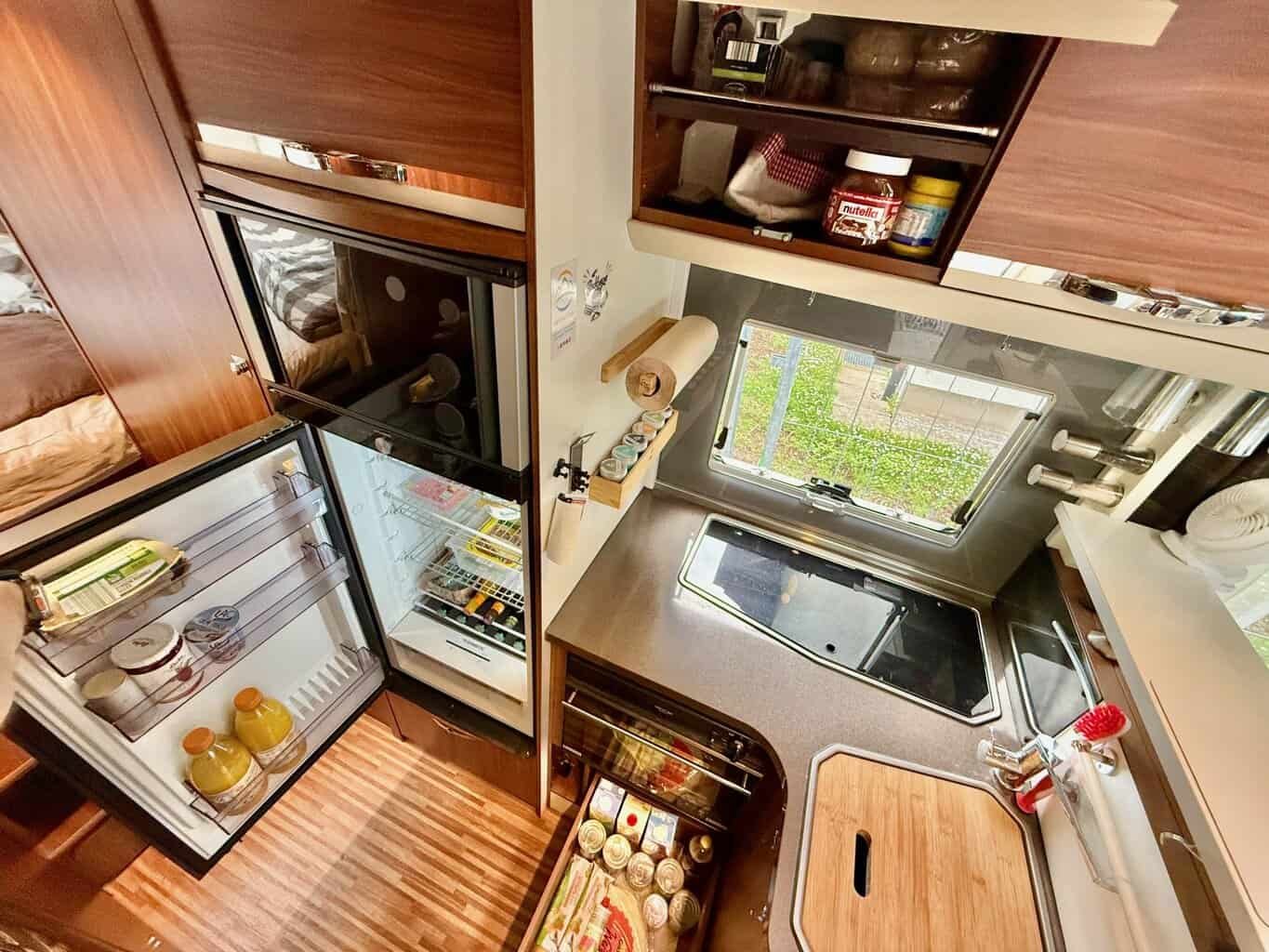 Einmal zu schnell im Kreisverkehr unterwegs und man hört es im Kühlschrank und den Schränken wieder rumpeln. Einmal die Schrank- oder Kühlschranktür aufgemacht und ein paar Dinge rollen und verteilen sich wieder über den Boden. Fast schon Camper Alltag. Völlig unnötig und ist bei uns längst Vergangenheit.