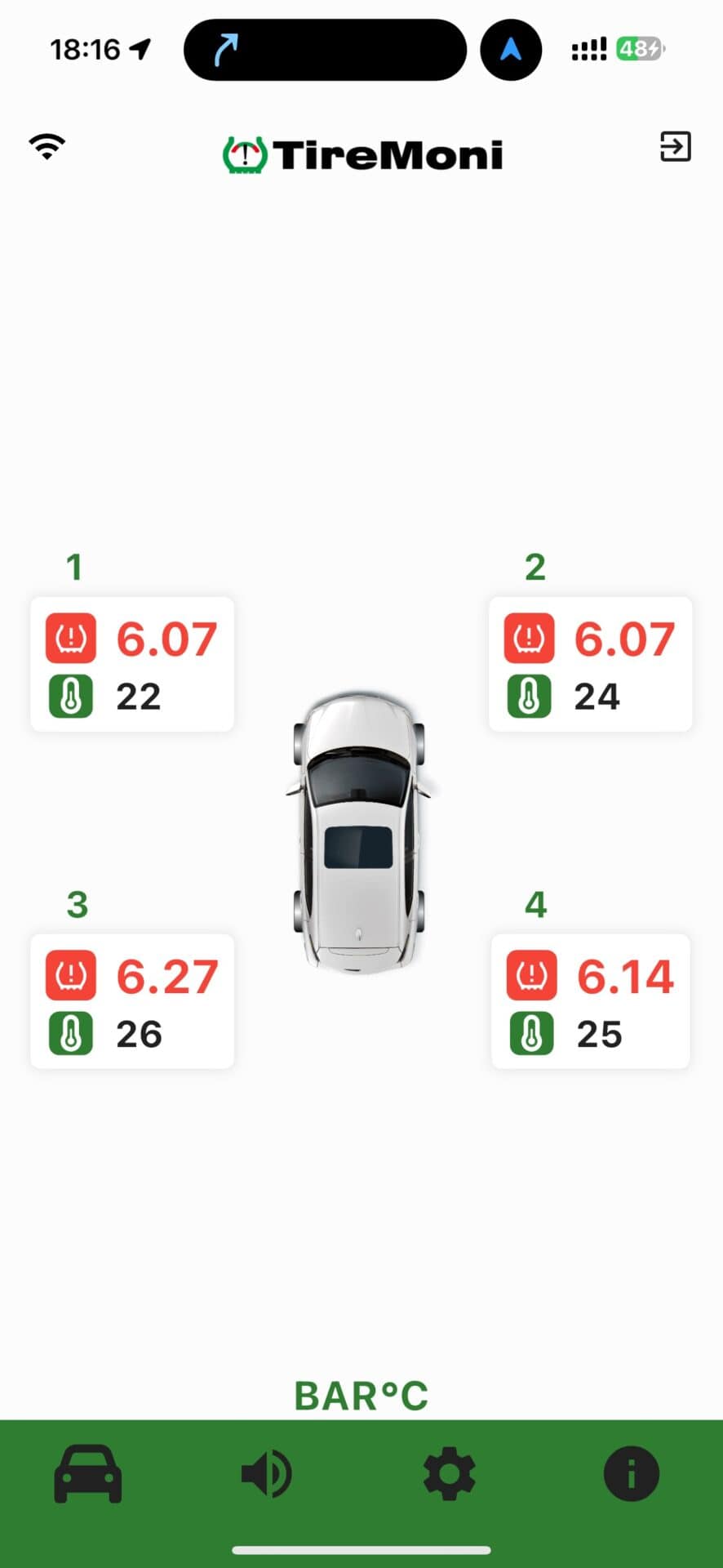 Das TireMoni Bluetooth Modul ermöglicht die Verbindung der Sensoren mit einer App. Zusätzlich zur TireMoni-Display oder ganz einfach nur über die App. Selbst Apple CarPlay wird unterstützt.