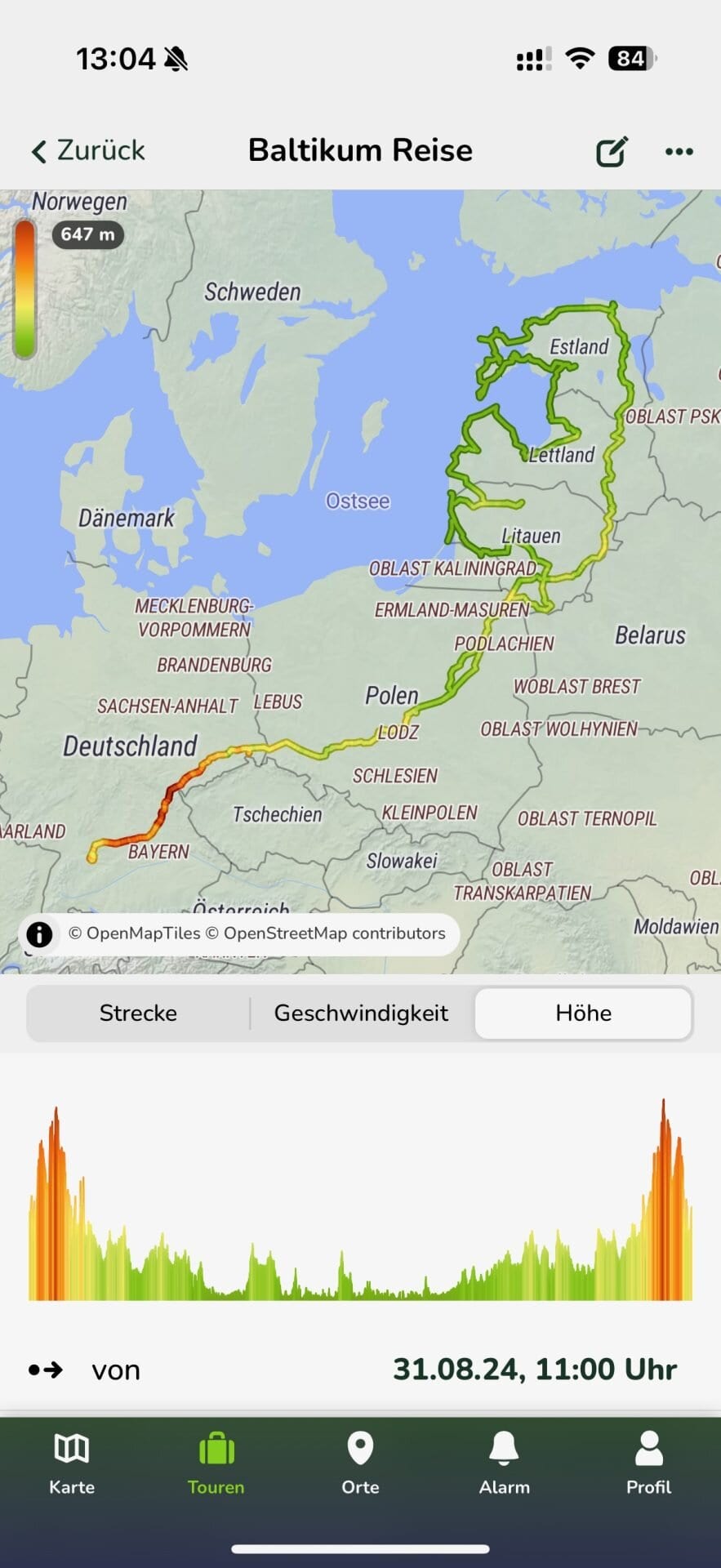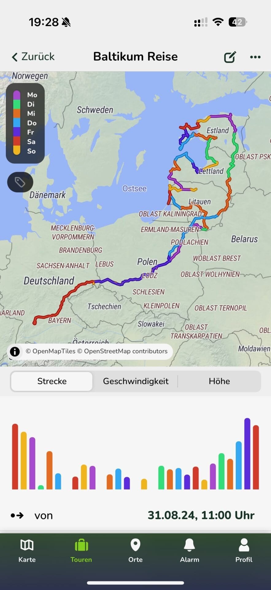 Seit dem Update kann man nun die Touren noch besser und umfangreicher analysieren. So lassen sich neben der bekannten Übersicht auch Geschwindigkeit und Höhendaten der Strecke schön aufbereiten. Neben der puren Daten werden jetzt auch Diagramme erstellt und man kann die Route nach einzelnen Tagen aufteilen und diese farblich abtrennen. Wieder mal ein sehr schönes Update.
