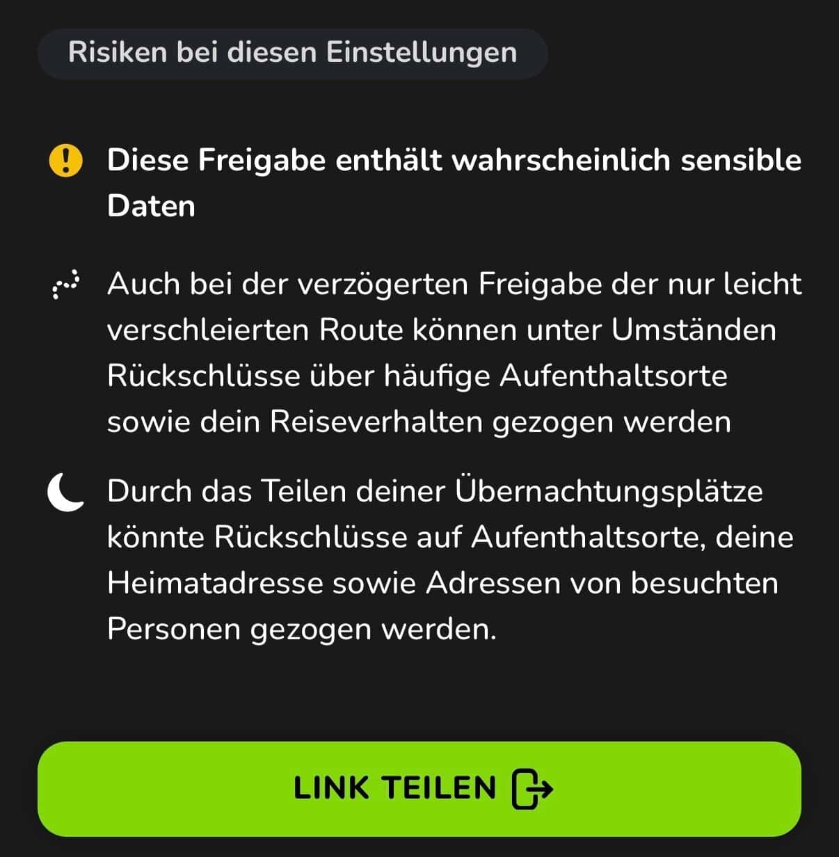Auch der Passwortschutz kann helfen, dass nicht jeder, sondern zum Beispiel nur eure Follower Zugriff auf die Reise haben. Hinweise, was die einzelnen Freigaben für euch bedeuten, hat Fabian natürlich auch eingebaut. Er und sein Team sind extrem auf Datenschutz bedacht und denken immer den einen Schritt weiter.