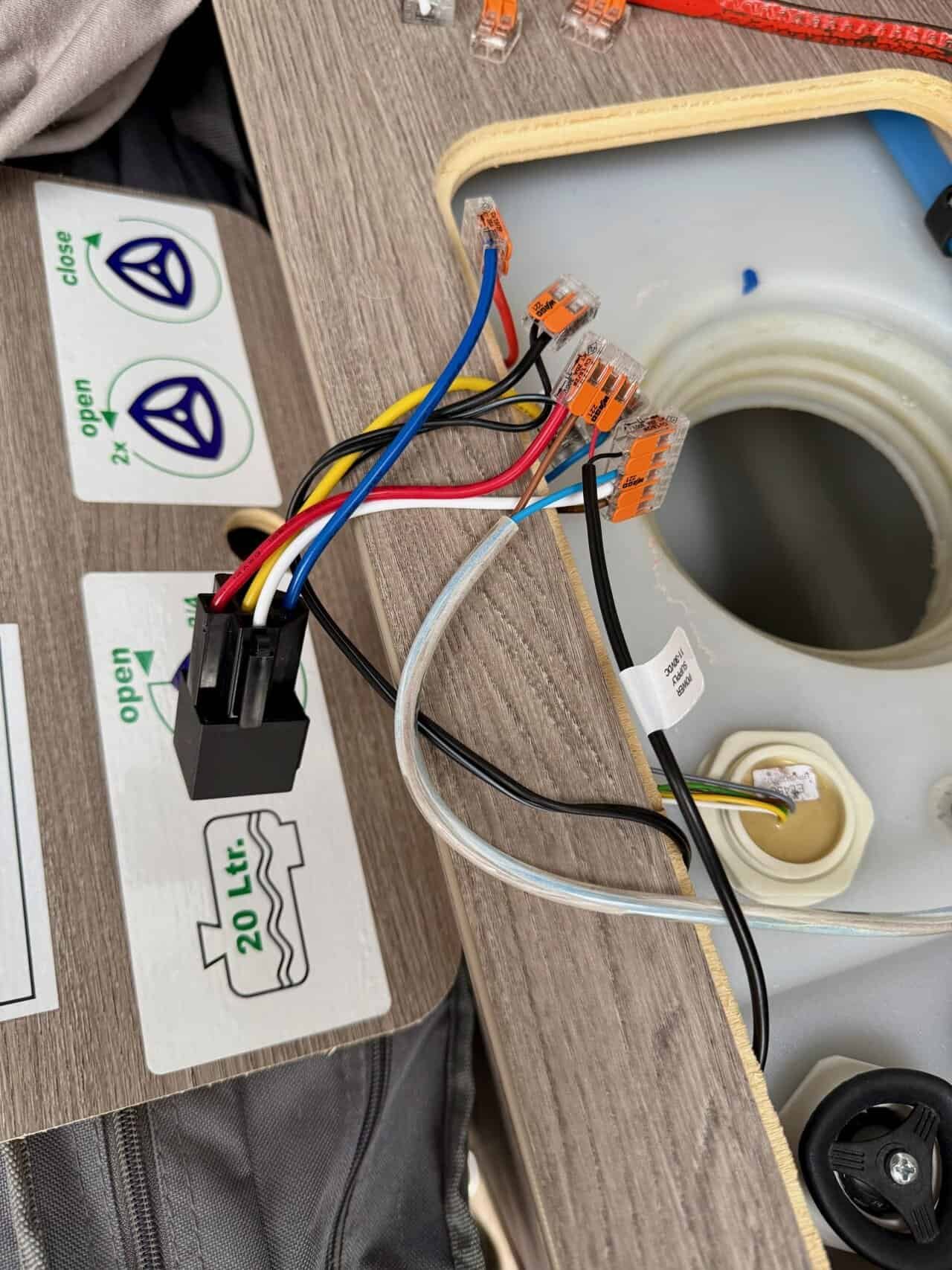 Zum Abschluss wird die neue Pumpe nur noch angeschlossen. Da wir nun aber die stärkere Pumpe verbaut haben sollte spätestens jetzt die größere (vermutlich 7,5A) Sicherung verbaut werden. Ansonsten wird es nach dem ersten Anlaufversuch schnell dunkel im Camper.