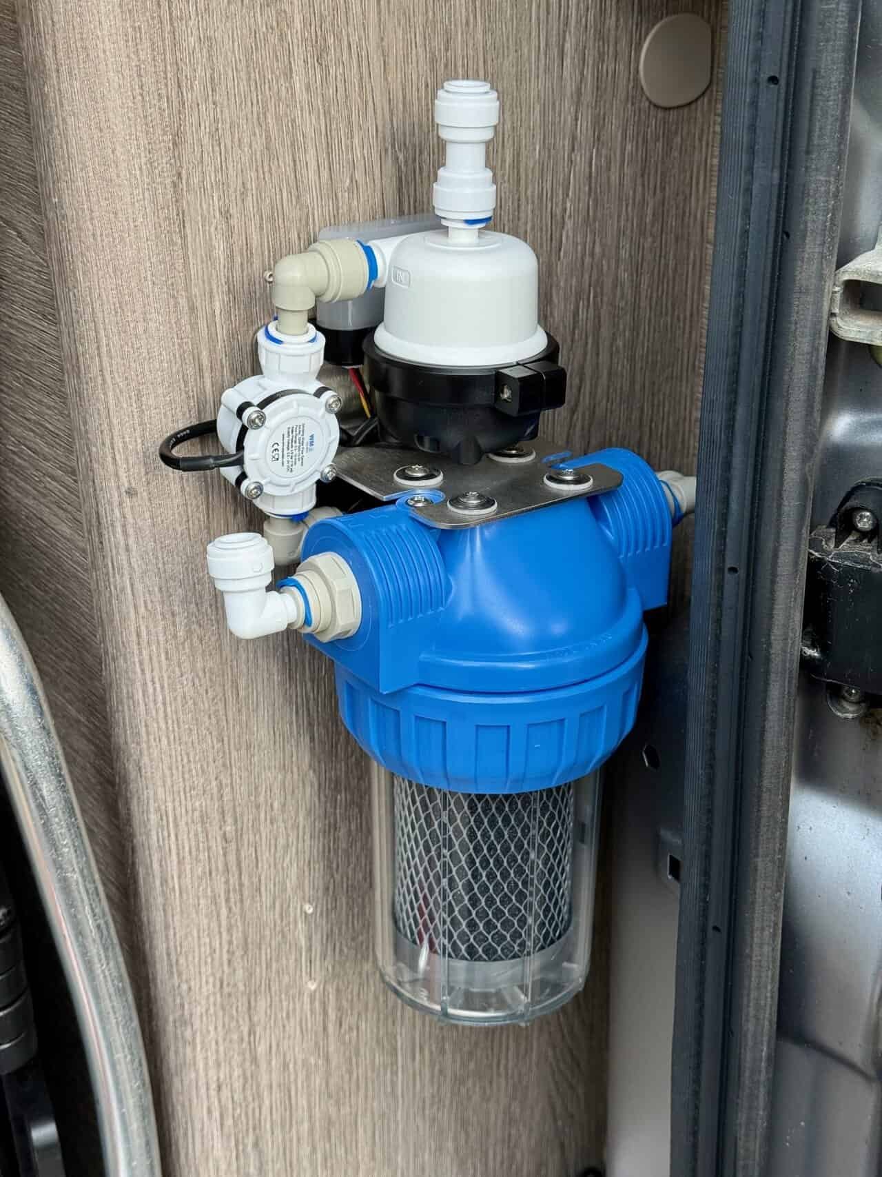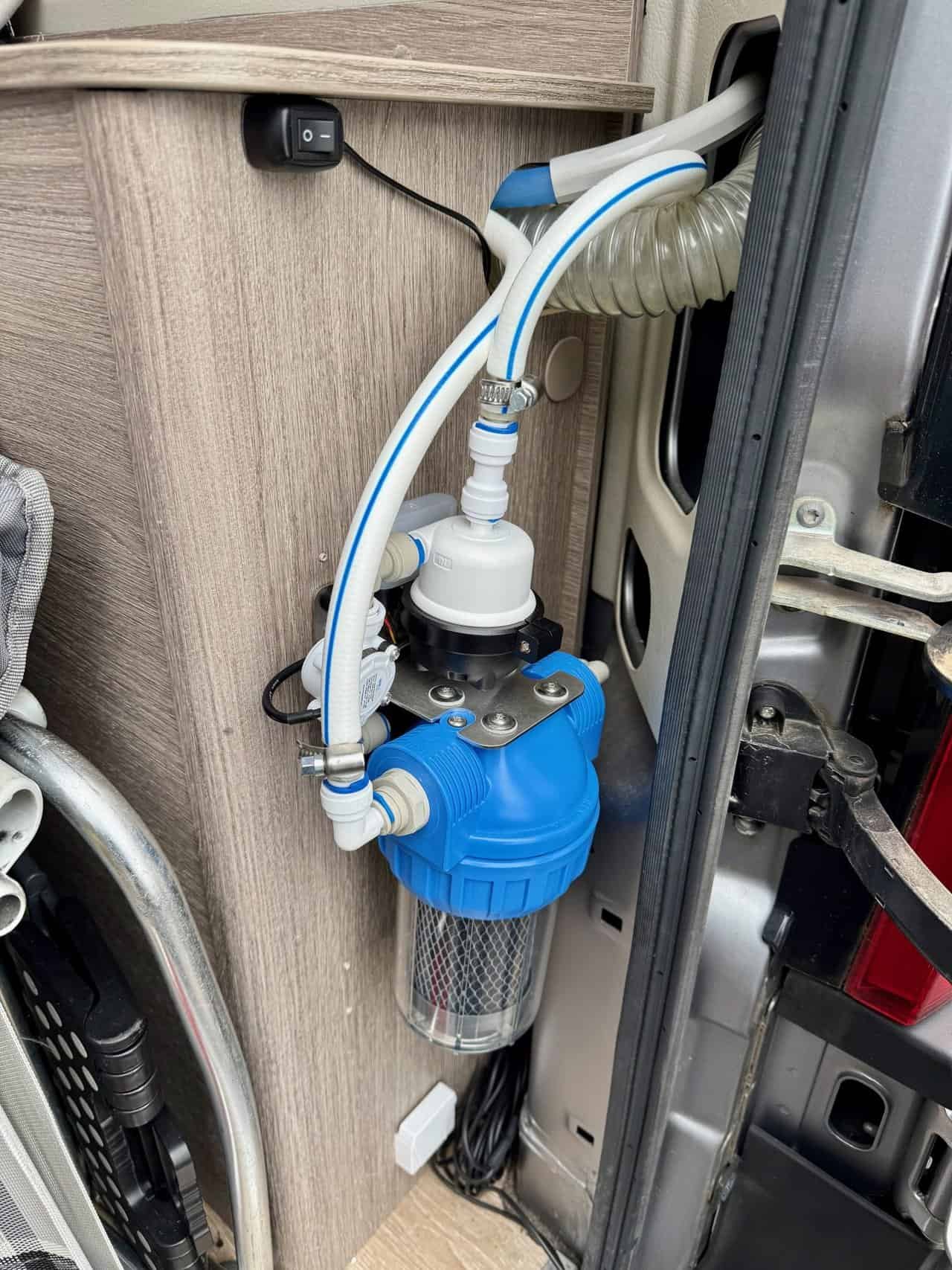 Hier zeigen wir euch, wie der Einbau der Filtereinheit mit UV Desinfektion auch im Kastenwagen mit einer Tauchpumpe realisiert werden kann.